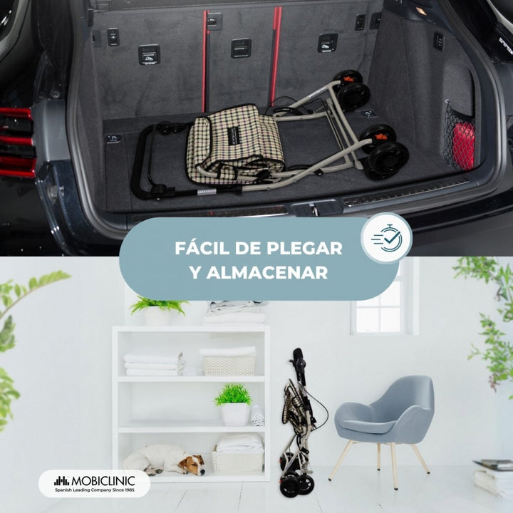 Carro de la compra andador | 4 ruedas | Hasta 120Kg | Plegable | Con bolsa | Sistema de frenado | Cuadros | Coliseo | Mobiclinic