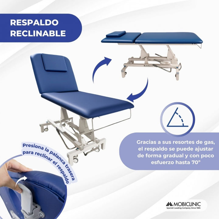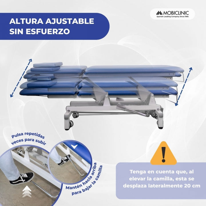 Camilla hidráulica | Altura regulable | Respaldo reclinable | Agujero facial | Ruedas escamoteables con niveladores | Mobiclinic
