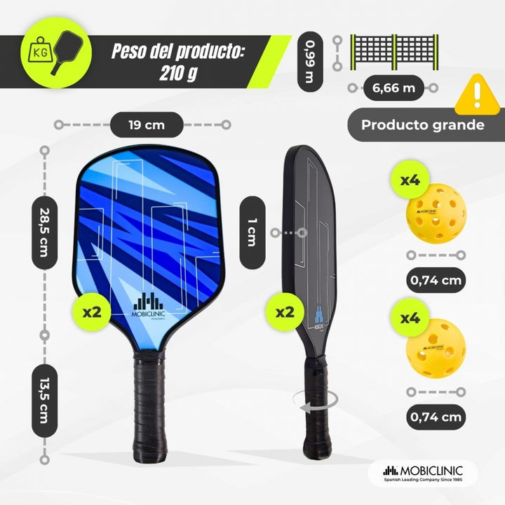 Set Pickleball | 4 raquetas | 8 pelotas | Red con ruedas | Bolsa de transporte | Grip Antideslizante | Mobiall | Mobiclinic