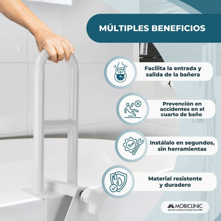 Asa acceso a la bañera | Bañeras Borde Liso (4.5 - 13.5 cm) | Máx. 100 kg | Uso clínico y doméstico | MobiBary | Mobiclinic