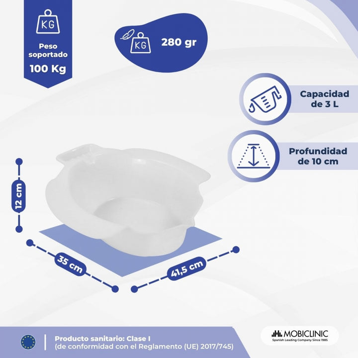 Fabricado en polipropileno, esta bidet es estable, resistente y ligero. Con un peso de 280 gramos y capacidad de 4 litros, permite una limpieza óptima utilizando agua tibia. Su profundidad de 10 cm es perfecta para una inmersión cómoda, sin riesgos de derrames. Es fácil de almacenar y transportar, perfecto para uso domestico o clínico.