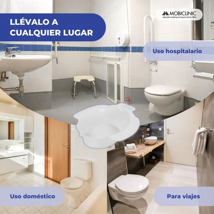 Bidet portátil | Acoplable al inodoro | Uso doméstico y clínico | Hasta 4 litros | Estable | Plástico | Hana | Mobiclinic