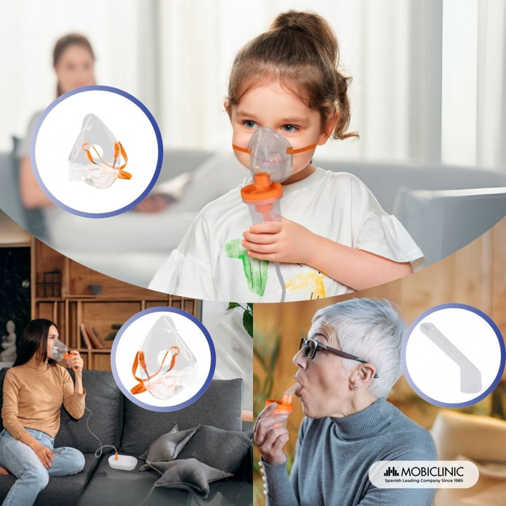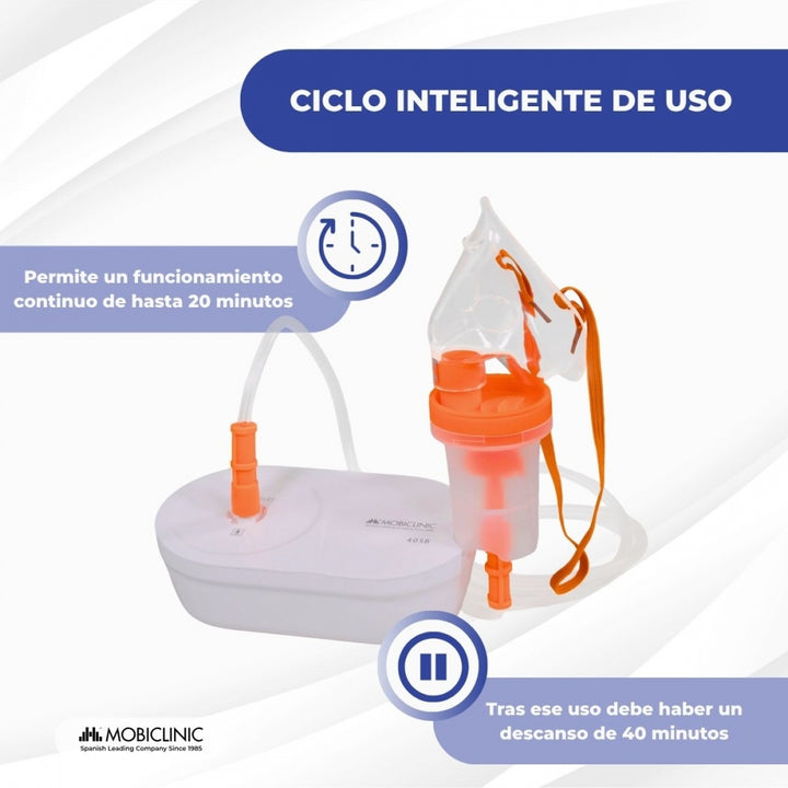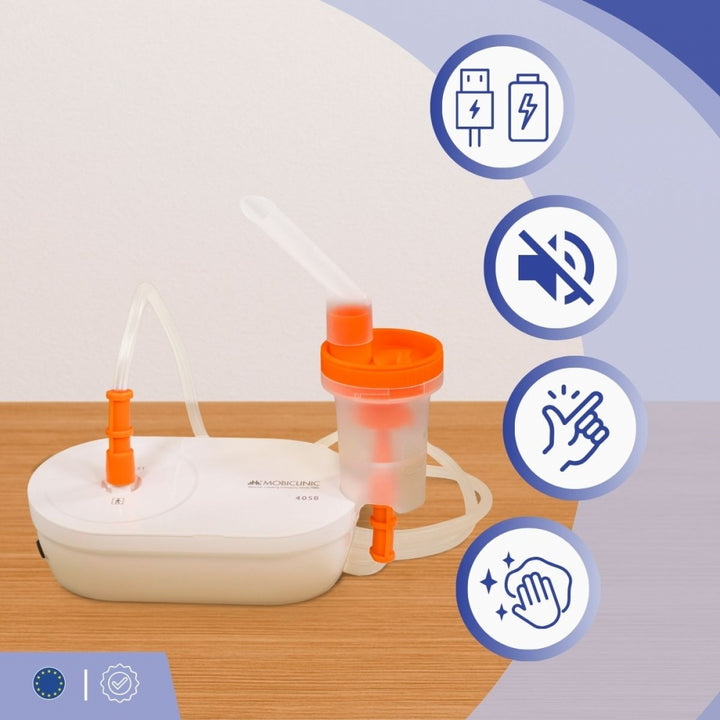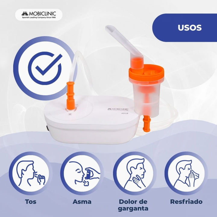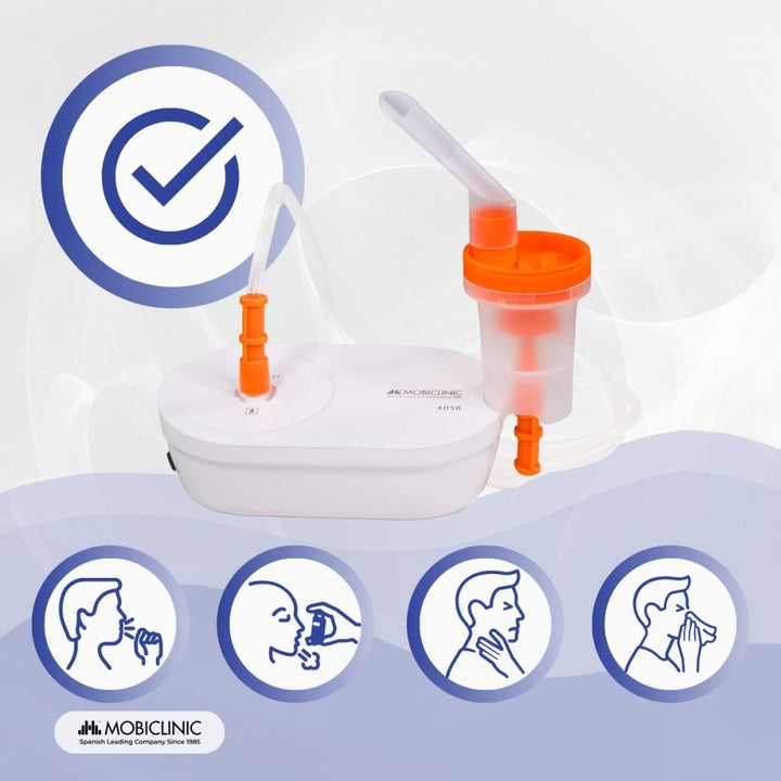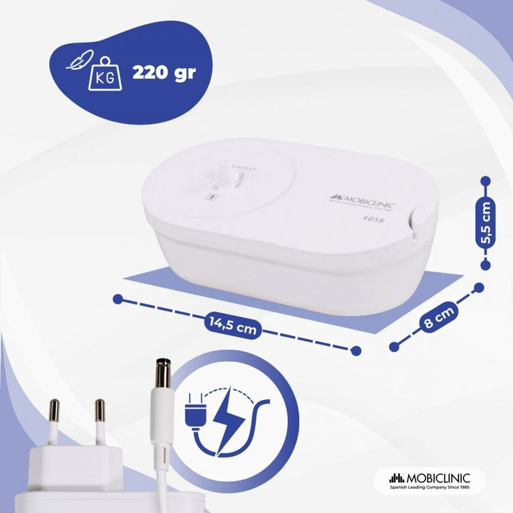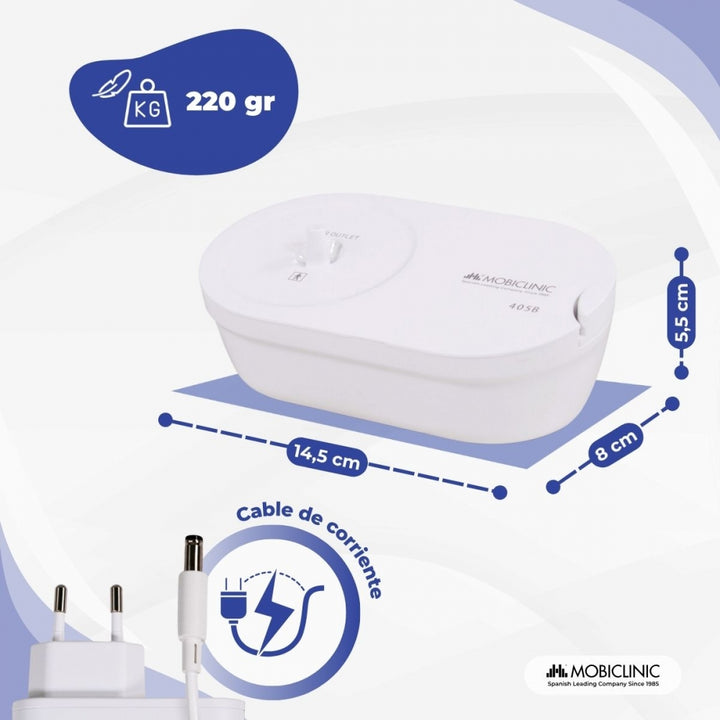 Nebulizador de aire comprimido | 2 mascarillas + Boquilla | Silencioso | USB | Portátil y ligero | Nebumobi2 | Mobiclinic