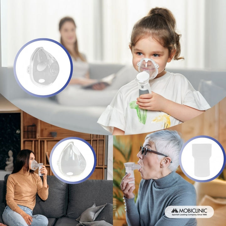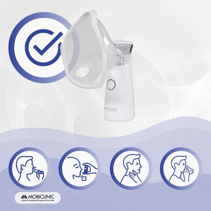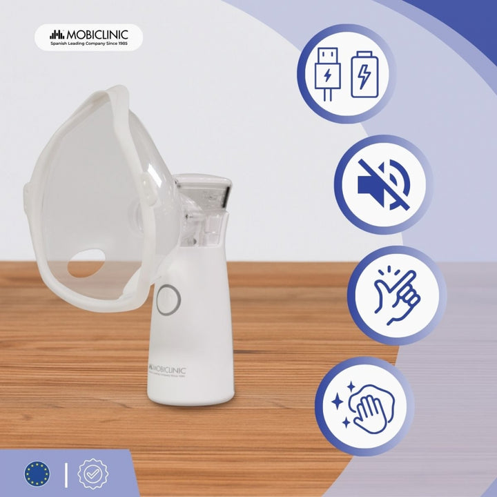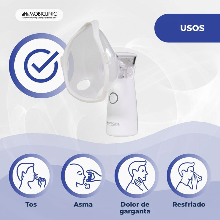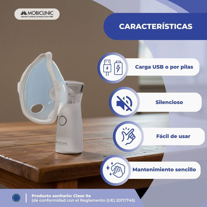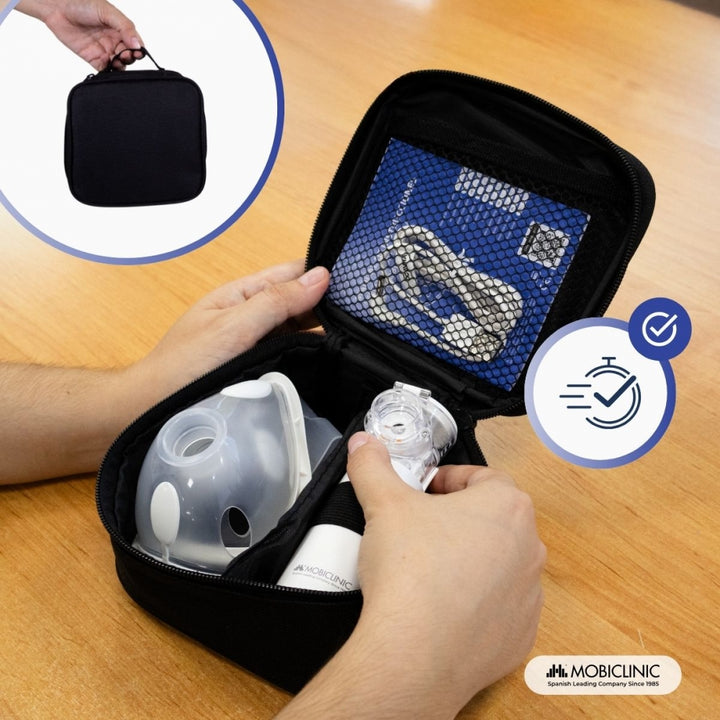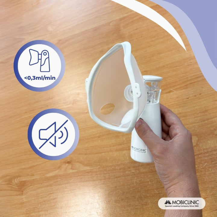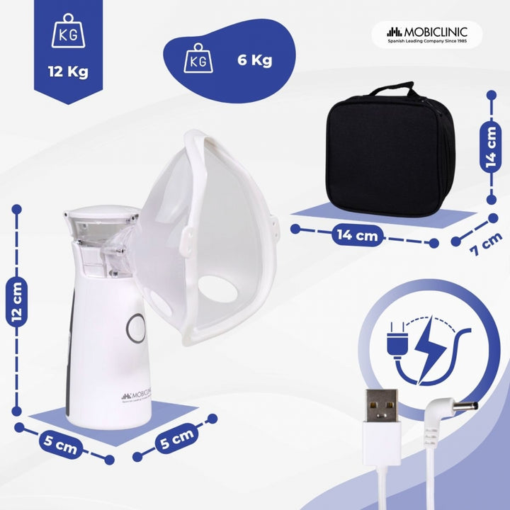 Nebulizador de malla | Portátil | 2 mascarillas + boquilla | Estuche transporte | Inalámbrico y USB | Nebumobi1 | Mobiclinic