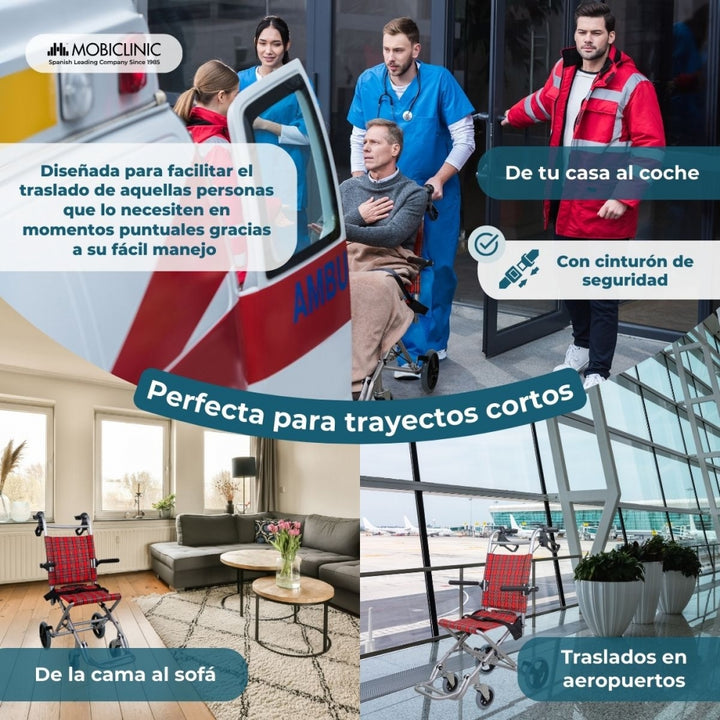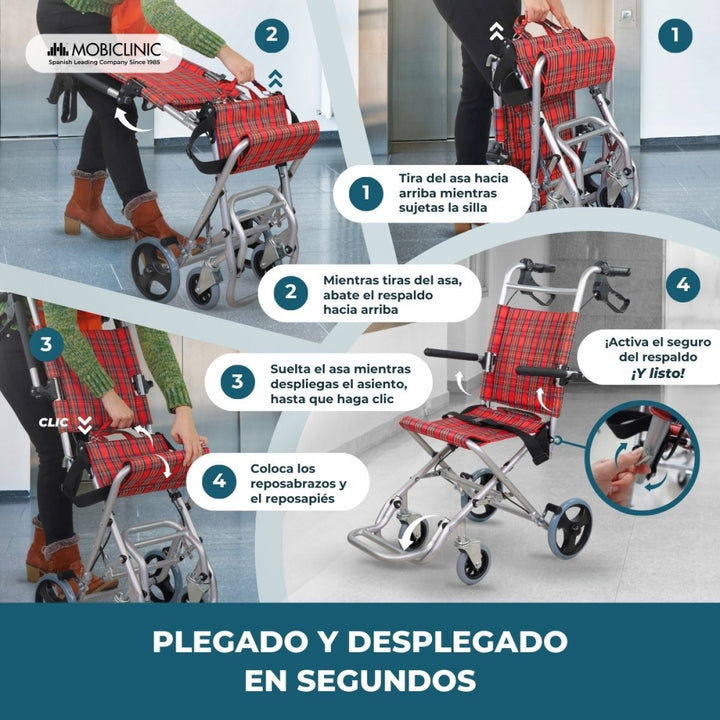 Silla de ruedas para tránsito | Asiento 30 cm | Aluminio | Frenos en manetas | Cuadros escoceses | Neptuno | Mobiclinic