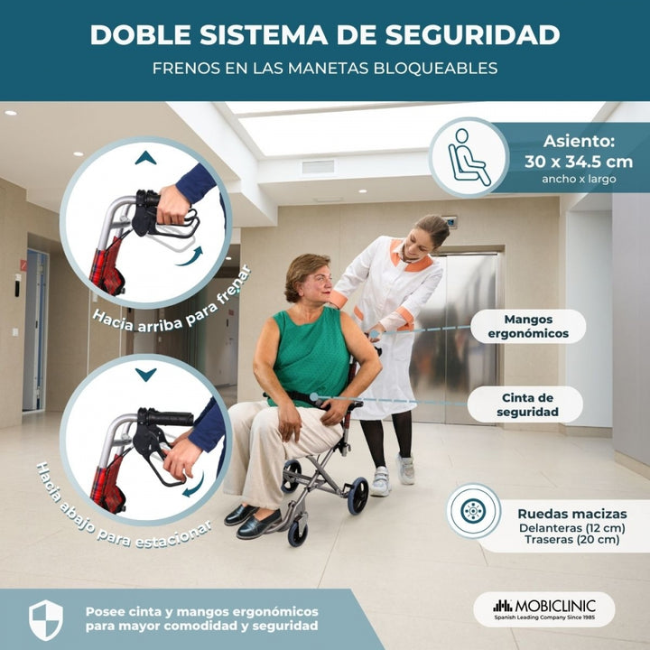 La doble barra inferior de la que dispone aporta mayor sensación de seguridad, estando además fabricada con material ignífugo. Su respaldo y asiento ergonómicos permiten la máxima comodidad de los pacientes, así como la de sus acompañantes, ya que permite la subida tanto de los reposabrazos como de los reposapiés. En resumen, esta es la silla ortopédica ideal si lo que buscas es seguridad, comodidad y facilidad de uso.